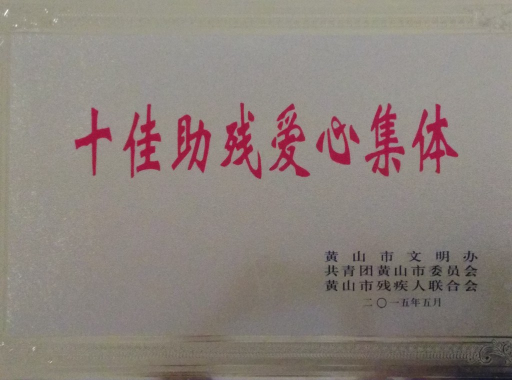 公司榮獲黃山市“十佳助殘愛心集體”稱号